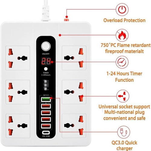 محافظ و چندراهی پاور سوکت 6 پورت تایمردار مدل BKL-11